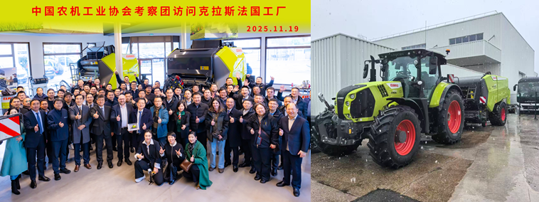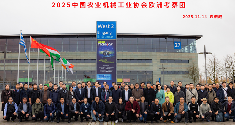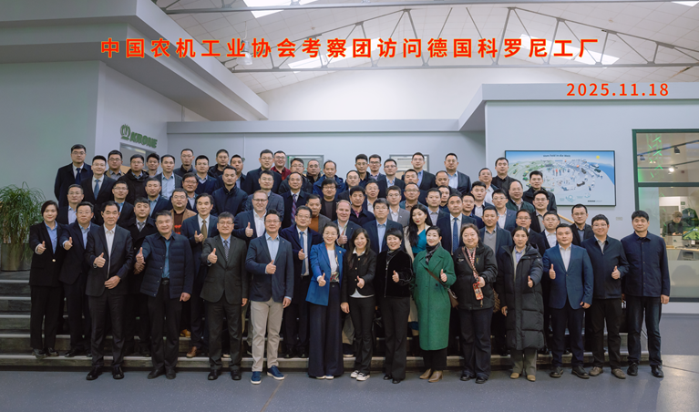 中国农业机械工业协会组织的“中国农机工业代表团”一行88人,由赵剡水会长带队,于2025年11月赴欧洲进行农机工业的专业考察。代表团一行用三天时间详细考察了德国AGRITECHNICA展会(以下简称“汉诺威农机展”),并依次访问了科罗尼(KRONE)公司在德国Spelle的工厂、雷肯(LEMKEN)公司在德国Alpen的工厂和克拉斯(CLAAS)公司在法国Metz的工厂。