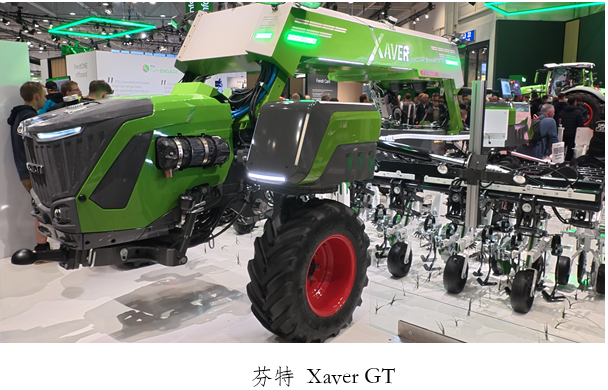 芬特FENDT展出的Xaver GT 系列自主农业机器人,采用全自主作业模式,通过 AI 导航系统实现无卫星信号区域的精准路径规划并可实现自动避障。搭载混合动力系统,采用四轮转向 + 蟹行模式,可在坡地或狭小空间灵活作业。
