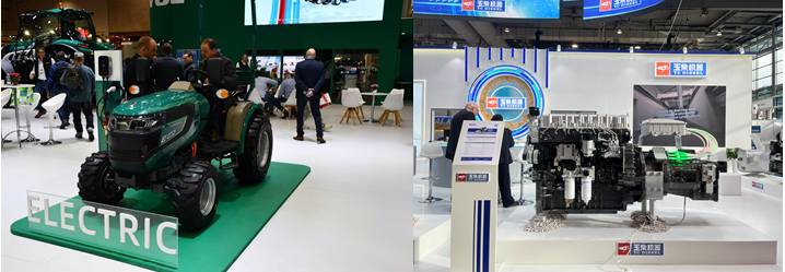 潍柴雷沃展出全球首发的纯电动拖拉机E1000,采用纯电驱动实现全程零排放;广西玉柴展出新能源动力K09-IEP总成,集成发动机、电机与变速箱;丰疆智能、联适、华测、惠达等企业不但展示了在导航自动驾驶方面的技术实力,也利用无人机、割草机器人等产品展示了自己在智能化无人化方面的成果。中国农机企业在国际舞台上大放异彩。