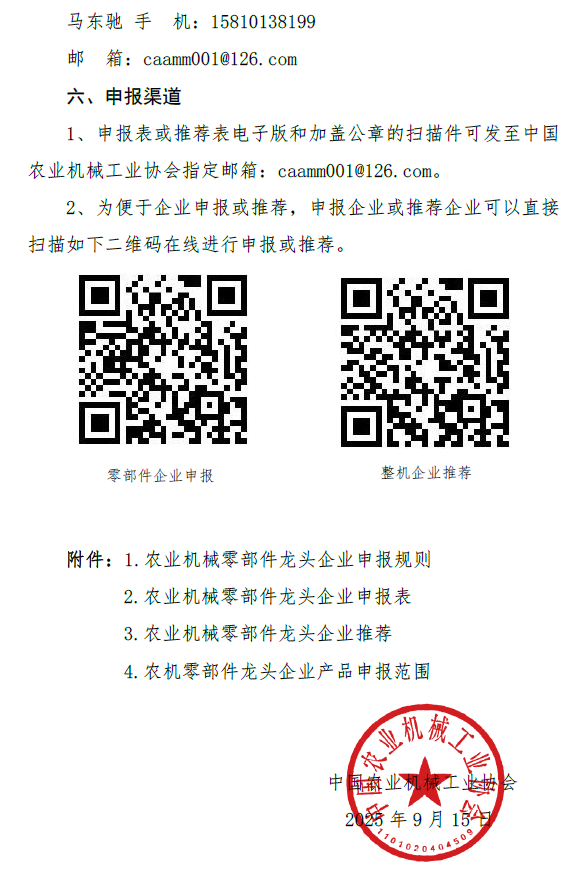 - 2025-09-16农业机械零部件龙头企业申报通知