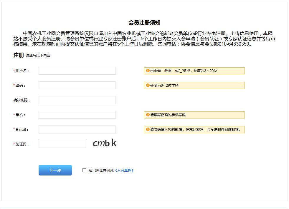 第一步:会员企业填写注册信息,并牢记用户名密码