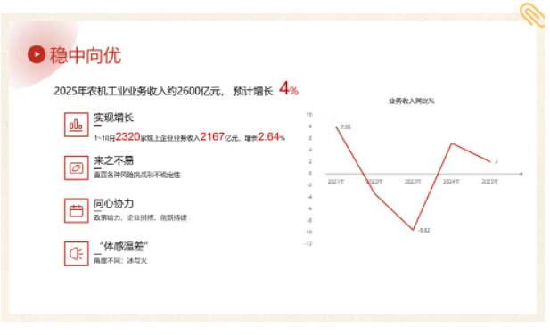 总体来看,2026年农机行业压力依然存在,但不会出现大幅下滑,将在调整中逐步企稳。