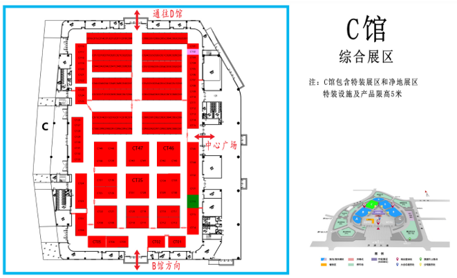 C展厅包含室内特装区和净地展区,特装设施及产品限高5米,设置特装展位49个,净地展位133个,展览面积8200平,展示企业91家,展示企业包括河北农哈哈、河南德昌、石家庄天人、锐牛股份、新乡立广、南通卓越、河北黑一等整机及零部件企业,展示产品包括:自走式花生捡拾收获机、移动粮食烘干机、玉米收获专用割台、传动胶带、弹簧弹齿、喷灌机、播种机、割草机等产品。
